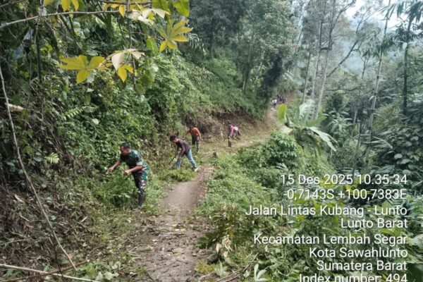 Anggota Koramil 01/Swl. Sertu Ngateno bersama Perangkat Desa dan Masyarakat melaksanakan Gotong Royong membersihkan Rumput yg menutup jalan, bertempat di Dusun Simotuang, Desa Lunto Timur, Kec Lembah Segar, Kota Sawahlunto Senin (15/12/2025) Plh Danramil 01/Swl Melalui babisa Sertu Ngateno mengatakan, bahwa pihaknya sengaja untuk mengerahkan Anggota Koramil 01/Swl yang di tugaskan disetiap Desa Baik yang…