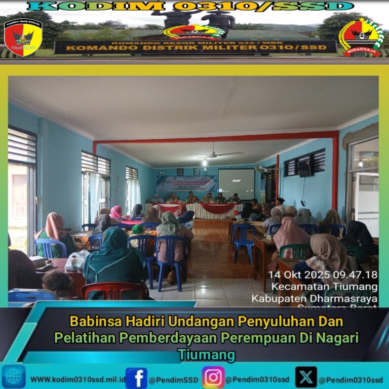 Peltu Aprizal Koramil 10/KB menghadiri Undangan Pelatihan dan Penyuluhan Pemberdayaan Perempuan. di Aula kantor Nagari Tiumang Kecamatan Tiumang, Kabupaten Dharmasraya. Selasa (14/10/2025) Turut Hadir dalam Acara Dinas Sosial kabupaten Dharmasraya diwakili ibu welni Suwandi SH Kabid pemberdayaan perempuan dan perlindungan anak Dinas Kumperdag kabupaten Dharmasraya, Owner Rendang paku Rangkito, Camat Tiumang, Ketua Bamus Nagari Tiumang,…
