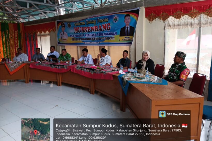 Babinsa Koramil 08/Kms Serka Muhamad Hadi menghadiri Undangan dari Nagari Sisawah dlm kegiatan Musyawarah Perencanaan Pembangunan Nagari (RKP) Sisawah TA 2026 kntr Wali Nagari Sisawah Lantai dua di Jrg Koto Baru Nagari Sisawah Kec Sumpur Kudus Kamis (16/10/2025). Hadir dalam kegiatan Bpk Camat kec Sumpur Kudus, Kepala BPP Kec Sumpur Kudus, Kepala Puskesmas Kumanis, P3MD…