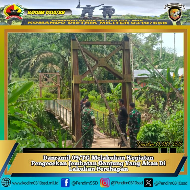 𝐒𝐢𝐣𝐮𝐧𝐣𝐮𝐧𝐠, Danramil 09/TG Kapten Inf Mondrayadi berserta Anggota melaksanakan pengecekan Jambatan Gantung yang akan di adakan perehapan berada di jorong lubuk Tolang Nagari Pulasan Kec. Tanjung Gadang Kab. Sijunjung. Kamis (12/02/2026). Kegiatan ini di hadiri Danramil 09/TG Kapten Inf Mondrayadi beserta anggota, Bapak Jupri Hendri dan Bapak Gilang dari Dinas PU Kabupaten Sijunjung. Kapten Inf…