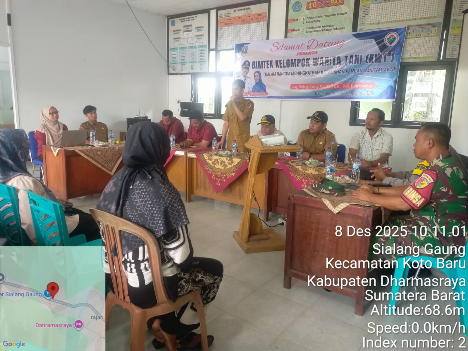 Babinsa Koramil 10/KB Dim 0310/SS Sertu Supriyanto menghadiri undangan dalam acara BIMTEK KELOMPOK WANITA TANI (KWT)DENGAN TEMA DALAM RANGKA MENINGKATKAN KETAHANAN PANGAN MASYARAKAT di gedung serbaguna Nagari, Nagari Sialang Gaung Kec. Koto Baru Kab. Dharmasraya Senin (08/12/2025)