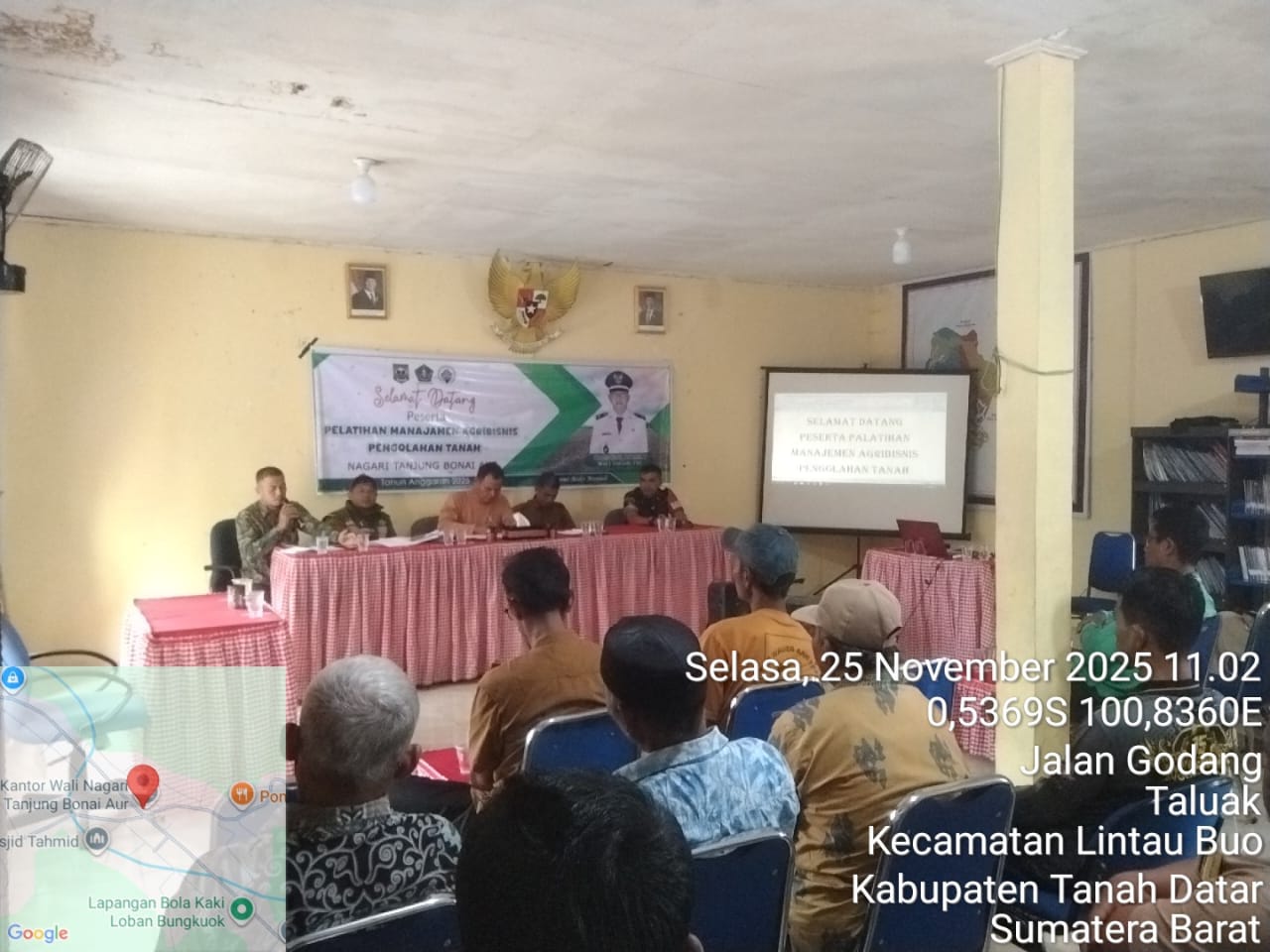 Kegiatan dihadiri, Sekretaris nagari TBA, Babinsa, Ketua BPN, koordinator p3MD, koordinator BPP kecamatan Sumpur kudus Kelompok Tani nagari TBA, Peserta Pelatihan.