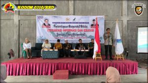 Dharmasraya – Anggota Koramil 10/KB Serka Suyono mewakili Danramil 10/KB menghadiri kegiatan Komunikasi, Informasi dan Edukasi (KIE). Bersama tokoh masyarakat, Anggota DPR RI, dr.H.Suir Syam,M.Kes.MMR. Bertempat di gedung serba guna jorong sumber mulya. Nagari Sipangkur Kec. Tiumang Kab. Dharmasraya. Sabtu (14/10/2023)