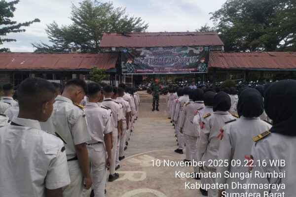 Serka Sugianto dan Koptu Bambang melaksanakan kegiatan diklat taruna angkatan yg ke Vll SMAN 1 sungai rumbai tahun pelajaran 2025/2026 dilapangan Upacara SMAN 1 sungai rumbai Nagari sungai rumbai kec sungai rumbai kab Dharmasraya. Senin (10/11/2025). Kegiatan tersebut untuk memotivasi para taruna SMAN 1 Sungai Rumbai untuk melakukan hal baik dan memaksimalkan kemampuan dalam diri…