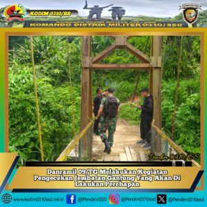 Kapten Inf Mondrayedi selaku Danramil mengecek jembatan gantung yang akan di lakukan perbaikan merupakan bentuk sinergi TNI dengan pemerintah daerah dan masyarakat untuk memastikan akses vital tetap berfungsi, terutama pasca bencana atau kerusakan akibat faktor usia.