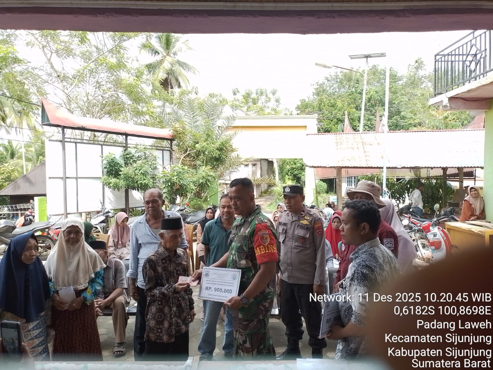 Koramil 07/TA, Babinsa Sertu Donny Martioni menghadiri undangan Penyaluran Bantuan Langsung Tunai (BLT) dana Desa tahun 2025 di Nagari Tanjung, Kec Koto VII, Kab. Sijunjung. Kamis (11/12/2025).